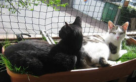 Da sich die Beiden auf dem Balkon der Pflegestelle in Menschengesellschaft sehr schreckhaft und scheu zeigen, werden die beiden nur in Wohnungshaltung mit Balkon und nicht in Freigang vermittelt. Zu groß ist das Risiko, dass sie vor Schreck davonlaufen.